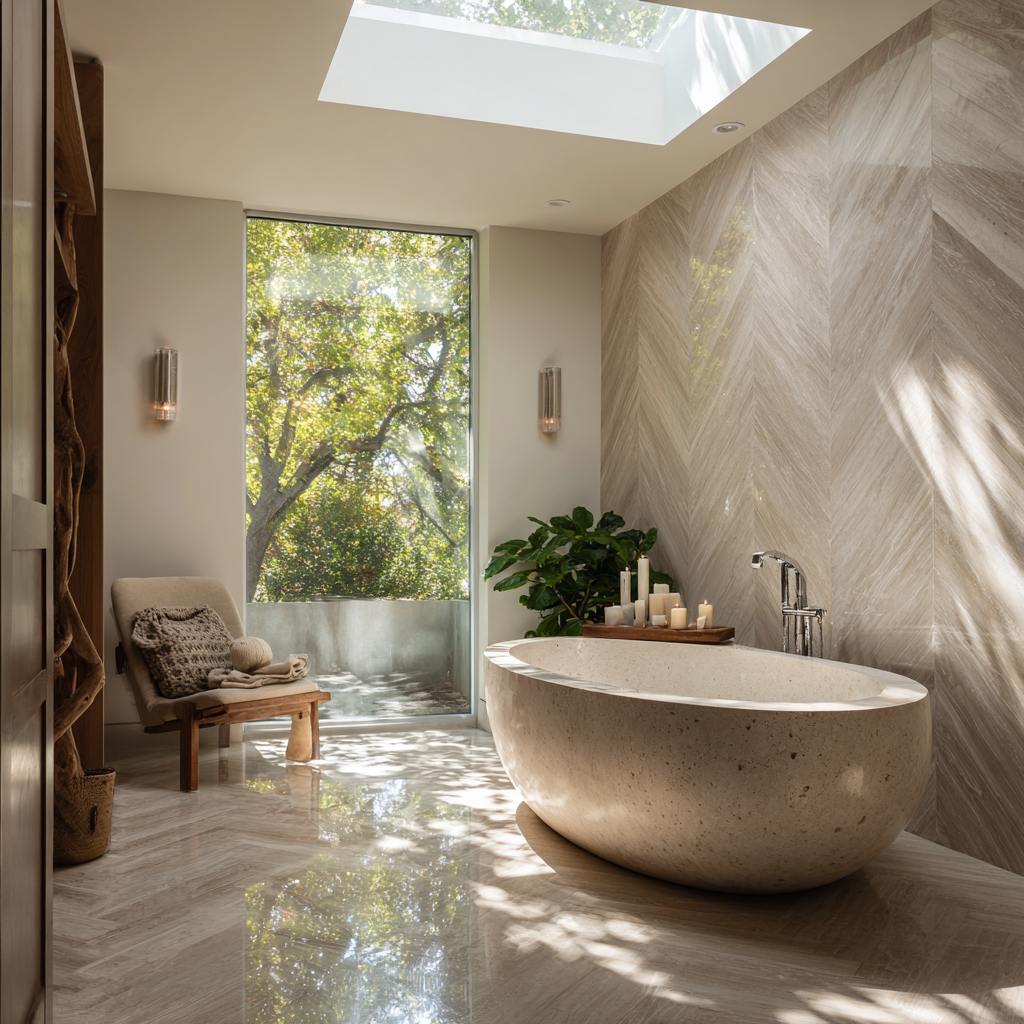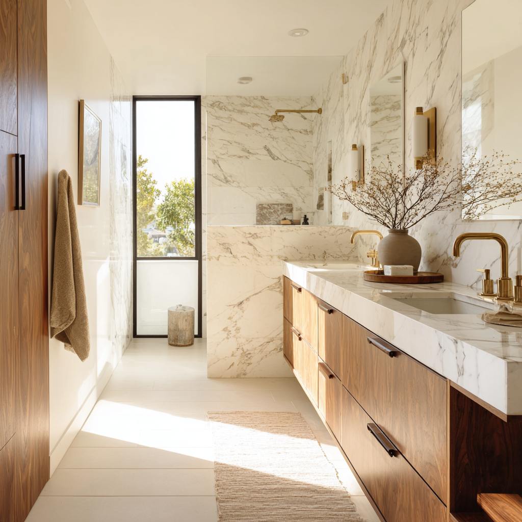 Mitred marble corners, perfectly centered niches, lighting that flatters at 6 a.m. and 10 p.m.