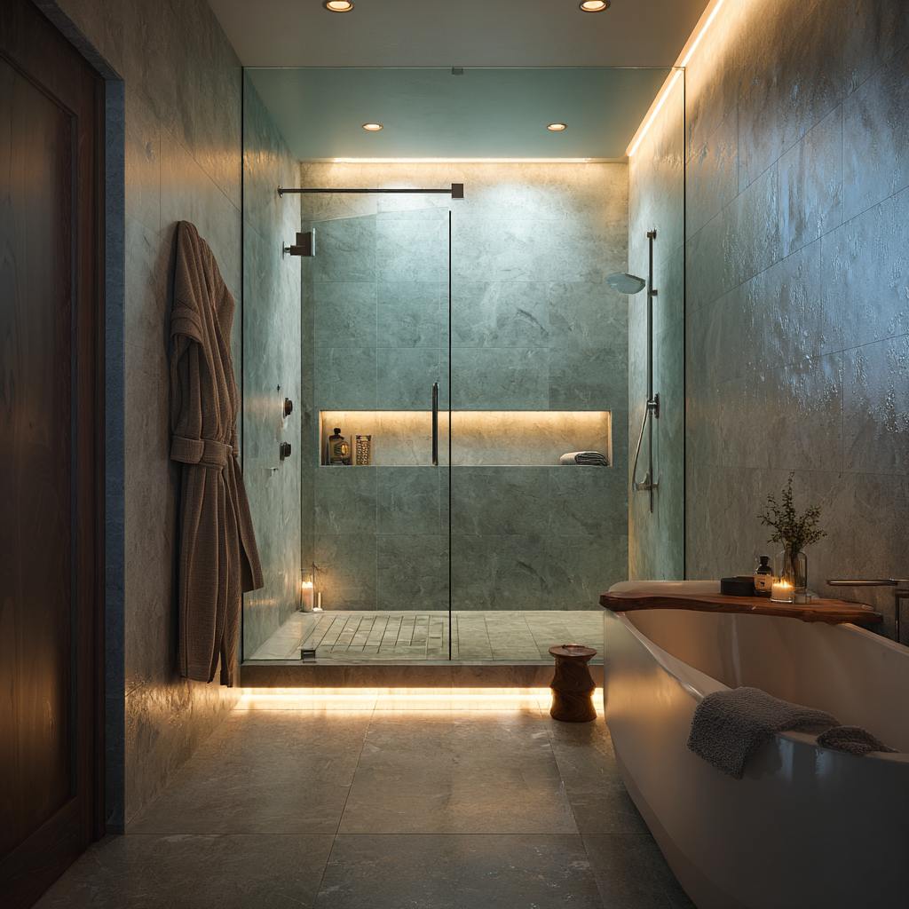 Frameless glass enclosures, linear drains, and sculptural tubs elevate the quick rinse into a true spa moment, all finished with easy-care surfaces that still feel luxurious