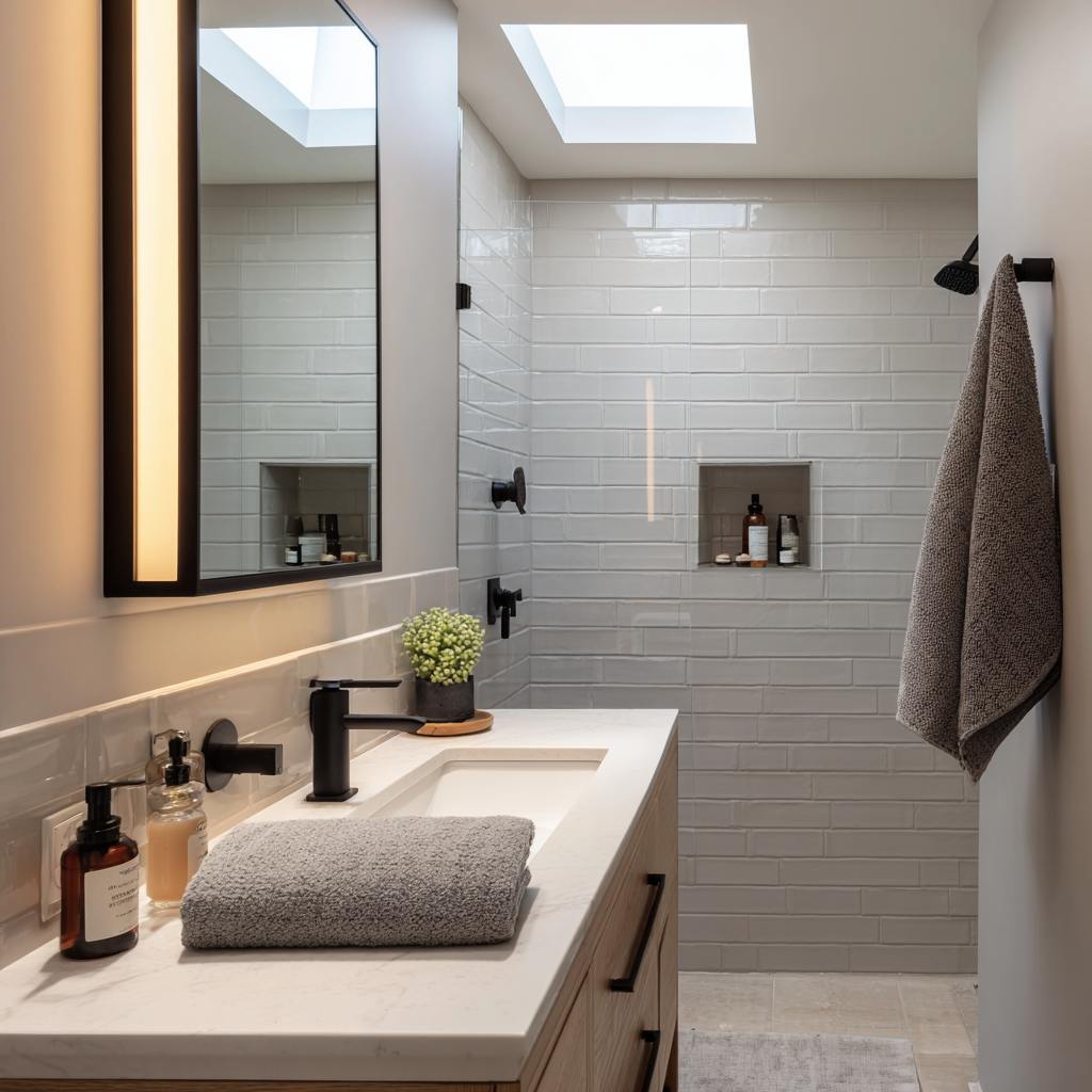 A Bay Area specialty. We use proven small bathroom remodel ideas, floating vanities, mirrored niches, and pocket doors to make tight footprints feel airy without sacrificing storage.