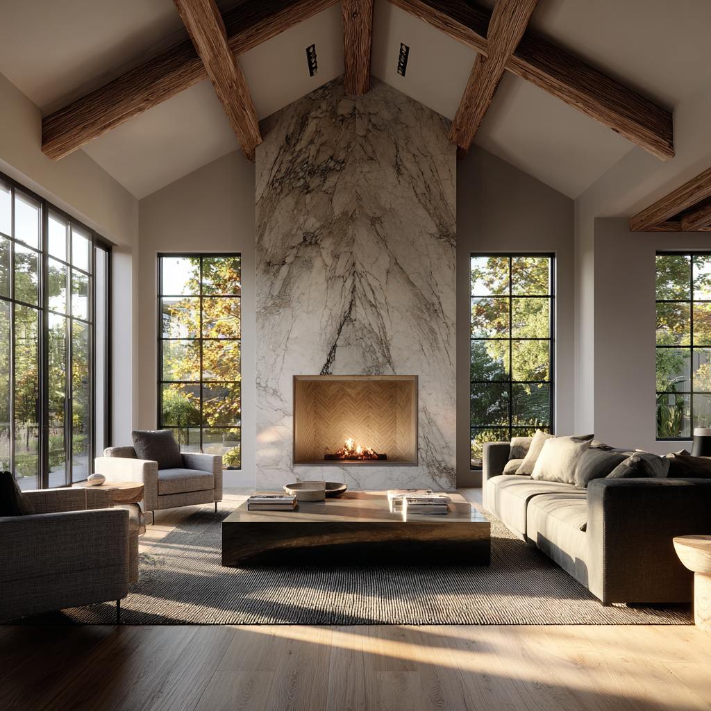 Drywall, millwork, cabinetry, stone, and trim are installed by artisans who treat corners like jewelry settings
