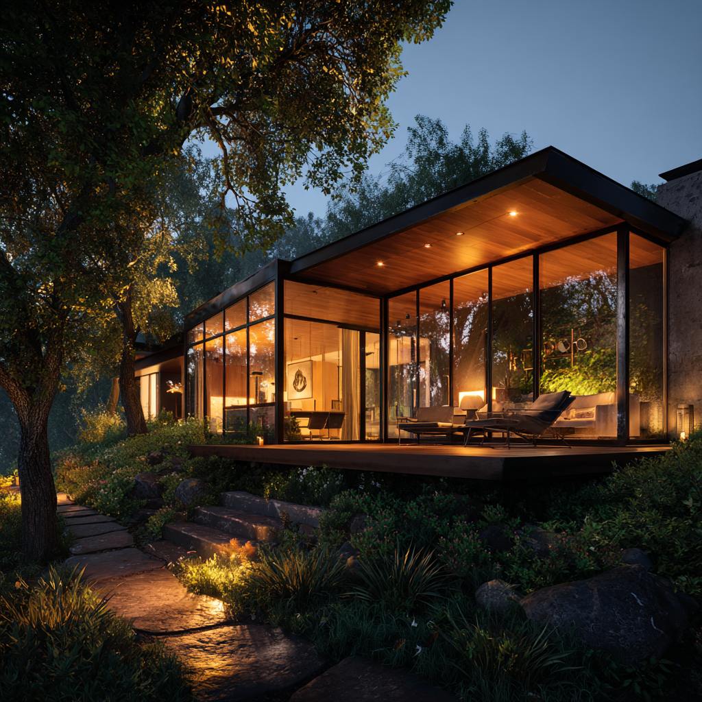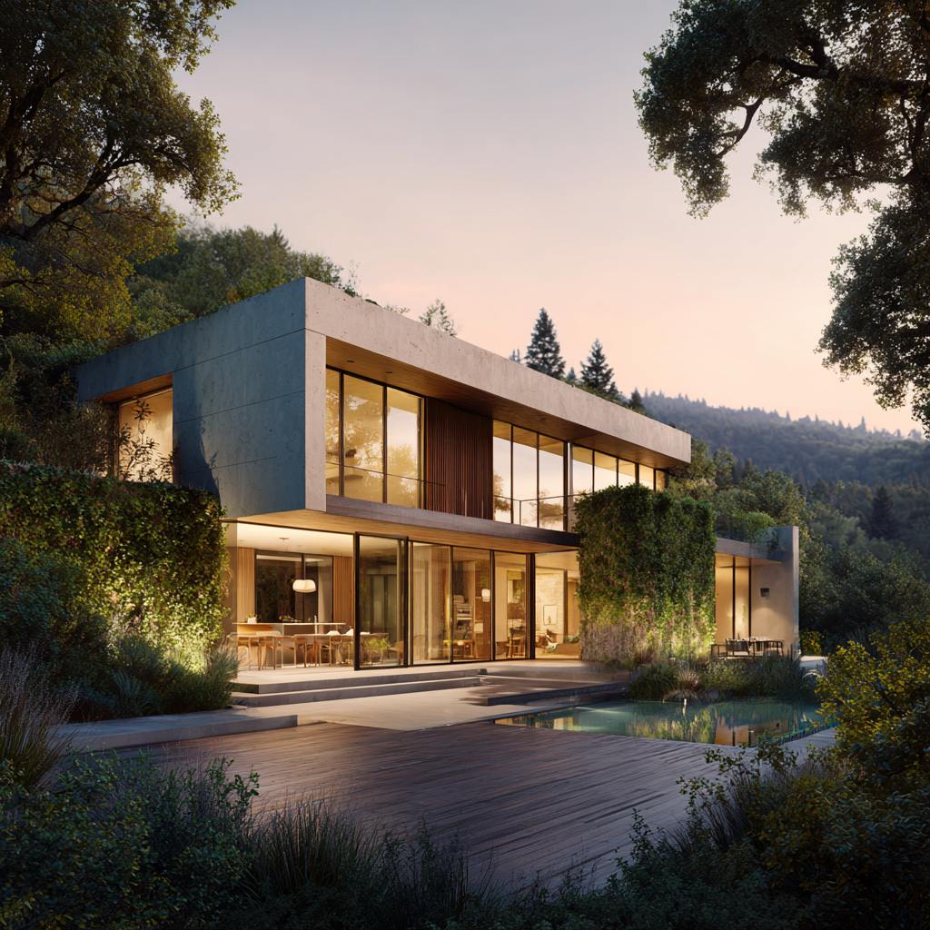 A steep, view-lot in Los Gatos called for creative engineering and bold design. We carved terraces into bedrock, poured a stepped foundation, and framed a glass-walled living wing cantilevered over valley oaks. Radiant concrete floors store daytime heat, while motorized louvers shade afternoon sun classic passive solar principles adapted to luxury living. Interior finishes include white-oak ceilings, cold-rolled-steel stair treads, and book-matched marble slabs. The owners now enjoy sunset dinners on an Ipe deck that feels like it floats above the canopy.